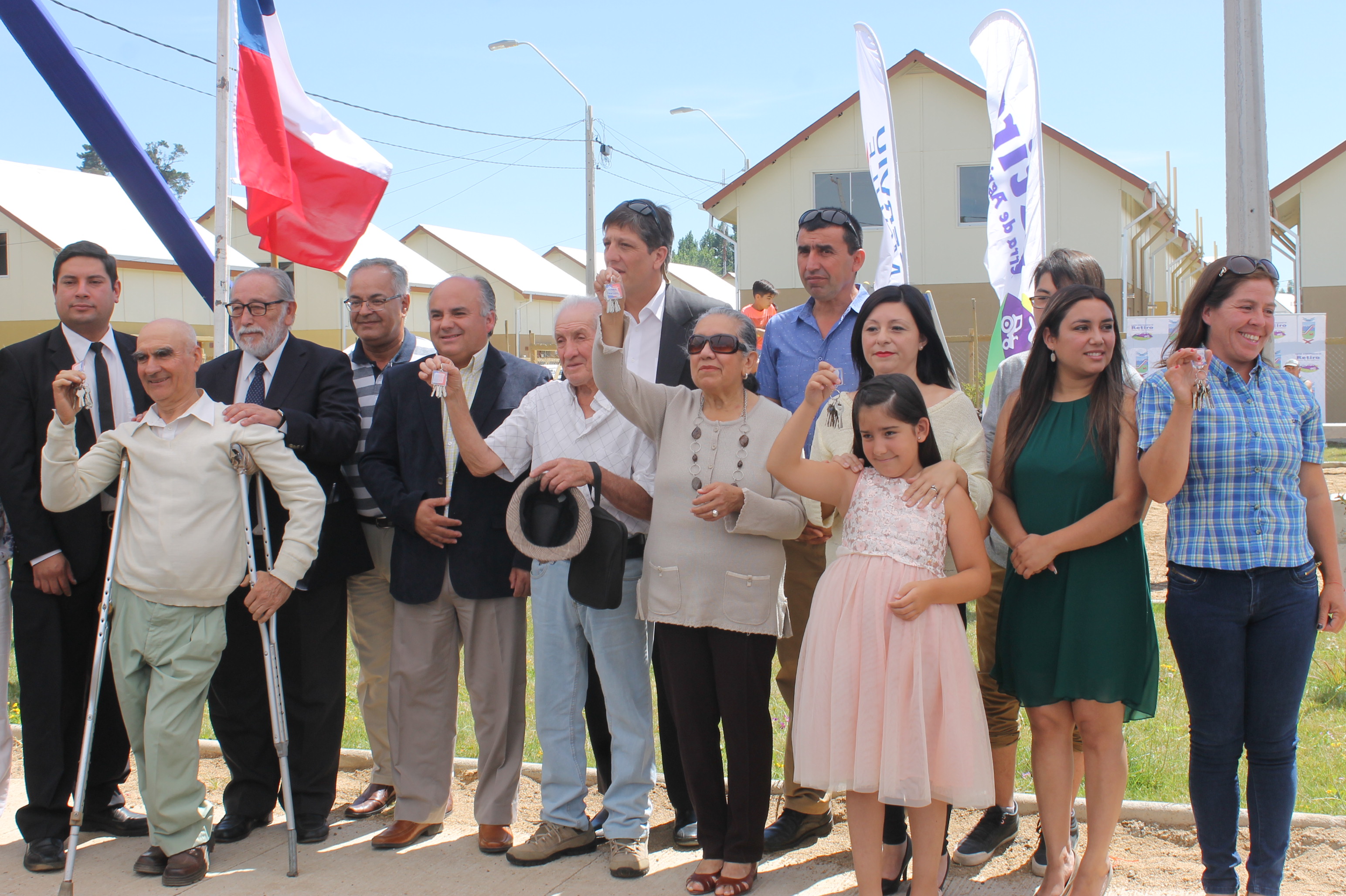 Intendente de la Región del Maule,Sr. Pablo Meza D., el Gobernador (S) de la Provincia de Linares,Sr. Jorge Tapia A.,el Alcalde de la comuna de Retiro,Sr. Rodrigo Ramírez P.,el Seremi de Vivienda Región del Maule,Sr. Rodrigo Olivares L.,el Consejero Regional electo,Sr.Rafael Ramírez P. entregan las llaves al conjunto habitacional Nuevo Sueño en la comuna de Retiro con 156 viviendas.