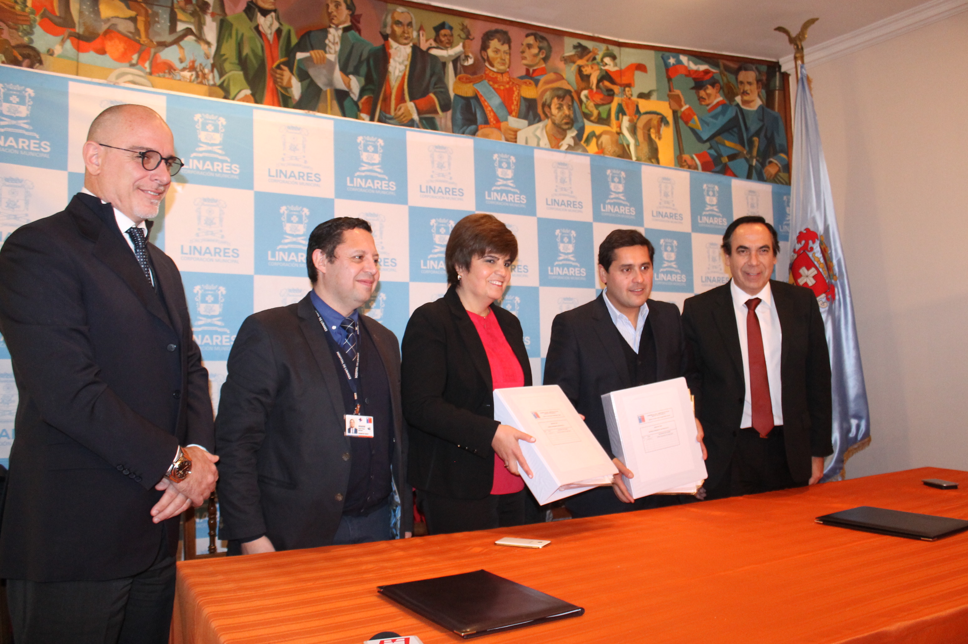 En dependencias de la Ilustre Municipalidad de Linares, se reunió la Gobernadora de Linares, María Claudia Jorquera, Alcalde Mario Meza, Director Hospital de Linares, Nolasco Perez, Director (s) del Servicio de Salud del Maule, Max Aguilar y Matteo Bordin, Representante de la Empresa Constructora Astaldi, para firmar Acta de entrega de Aprobación del «Anteproyecto Nuevo Hospital de Linares.
